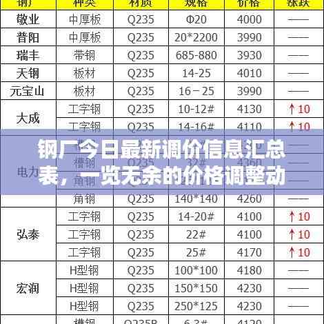 随着全球经济的不断发展和市场需求的变化,钢铁行业作为国民经济的重要支柱,其价格变动一直备受关注,各大钢厂发布的最新调价信息表引起了广泛关注,本文将对钢厂今日的最新调价信息表进行解读和分析。